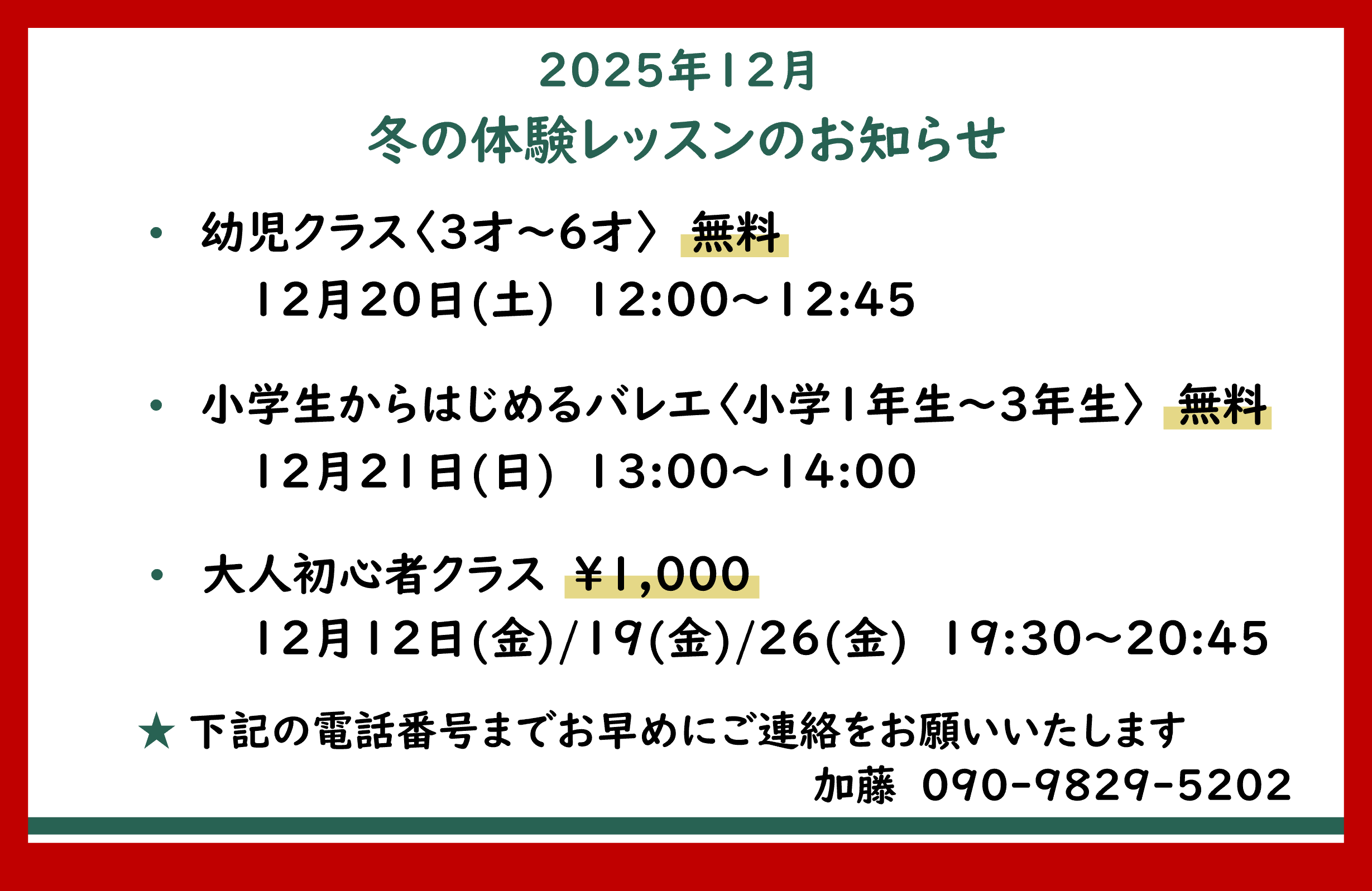 【日曜日 初めてのバレエ小学生クラス募集中】