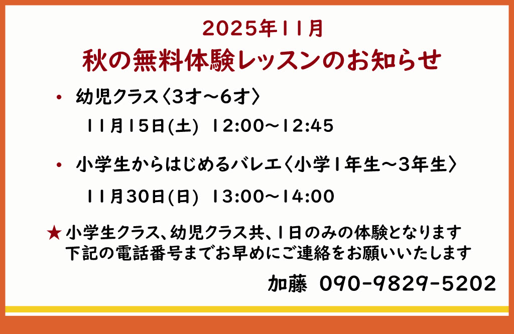【日曜日 初めてのバレエ小学生クラス募集中】